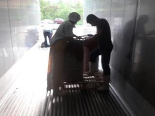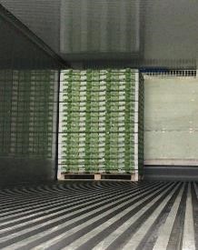 Presentación para exportación tarros para capacidad de 200kg con estibas, el contenedor de 40” refrigerado tiene capacidad para 114 tambores.